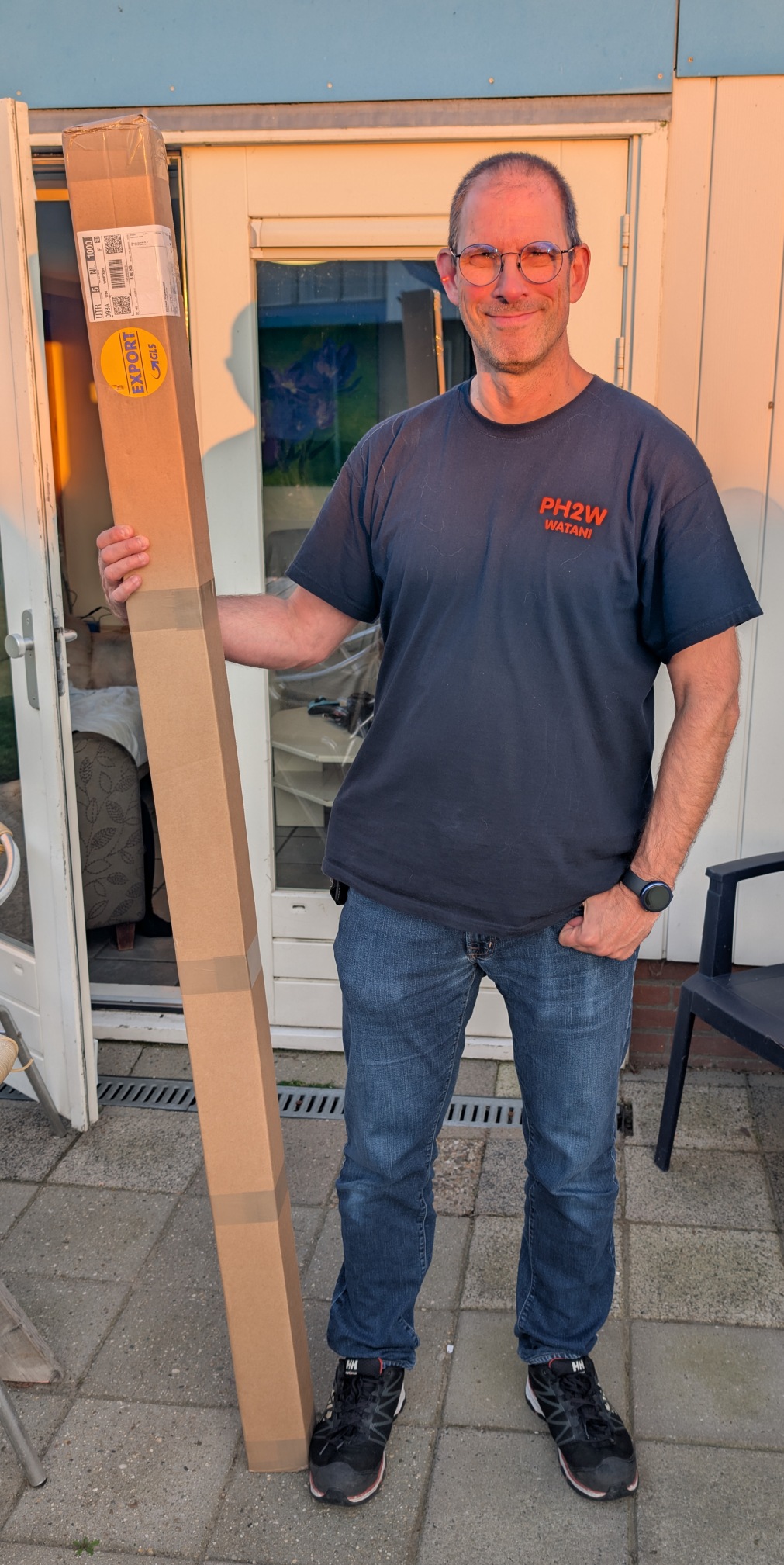Na de koffie, het bijpraten, de shack bewonderen is Andre zo vriendelijk mij een 10 meter lange kunststoffen uitschuifmast en een Heyendfed antenne voor 7, 14 en 28 Mhz te lenen.
